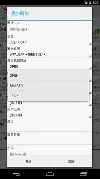 10、WiFi连接管理器支持802.1x/EAP加密模式。
