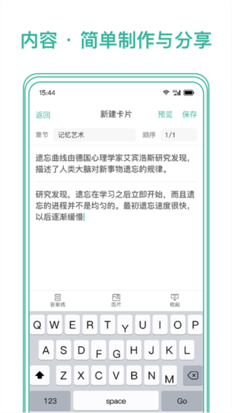 1、能够把知识编辑成卡片,目前支持文字、图片。
