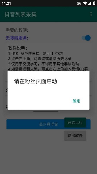 2、启动助手后会自动跳转抖音,开始运行前抖音要在主页资料卡片界面;