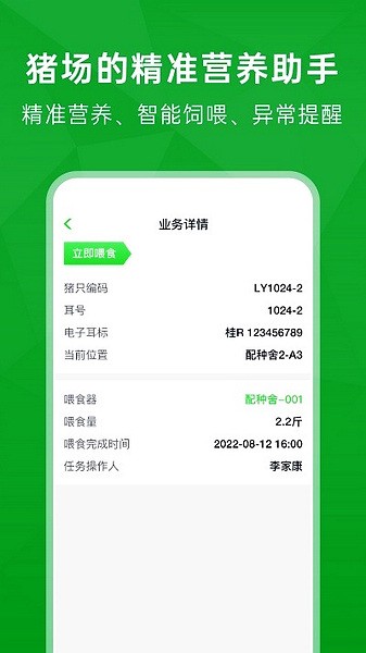 它还有精准营养、智能防非等功能,能实时监测猪的健康状况,及时报警,减少了很多麻烦。软件的专业性和标准化流程让我觉得挺放心的,毕竟养猪涉及到很多环节,这个app能帮用户更好地管理养猪场,确保生猪安全投放市场。