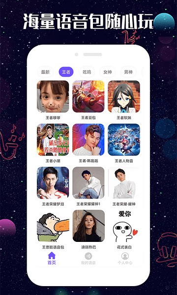 游戏开黑、语音聊天、交友必备的工具软件,50W+变声语音包定时更新,支持一键变声录音,还能微信语音聊天变声!让你玩出个性的变声体验!