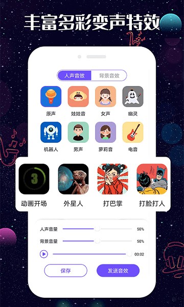 1、让大家随时都可以在这里找到不同变声效果,能够轻松的进行实时变声。