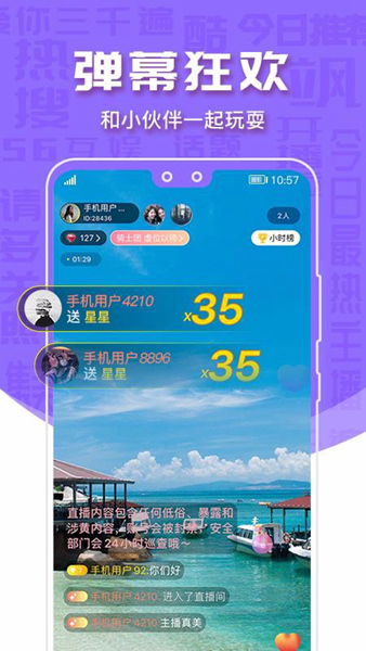 4、弹幕互动,在直播间能够发送弹幕与主播、其他看客进行狂欢互动;