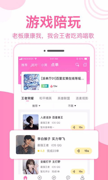 1、【暖心陪伴】在线相亲、点唱、电竞、娱乐、谁是卧底,男神女神陪你嗨聊,互动玩游戏;