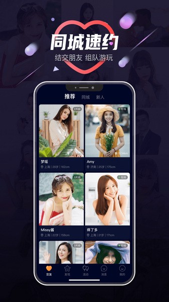 以同城为核心,让用户可以方便地找到身边的人,认识更多有趣的朋友。
