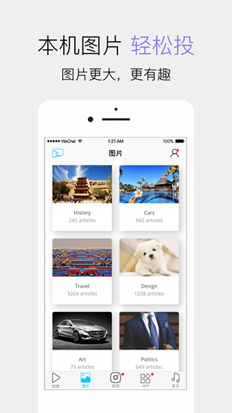 ✦投文件:支持本地手机中的照片、音乐、视频投射到大屏中,让客厅大屏电视,成为家庭共享中心,与家人朋友分享快乐!