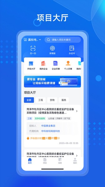 招采通app是一款专为招投标采购业务打造的高效线上办公平台。该平台通过集成先进的大数据技术支持全流程的电子化操作,包括项目查看、报名缴费、审批管理等核心功能。通过招采通APP,用户可以随时随地办理招投标相关业务,体验便捷、安全且高效的全流程服务。用户不仅可以轻松掌握项目动态,还能享受智能化的招标采购流程,极大地提高了工作效率。平台支持多种角色登录使用,包括招标人、招标代理机构、投标人等,满足各类业务需求。
