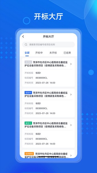 【开标大厅】开标全流程实时动态,从签到到结束,让招标采购更便捷。
