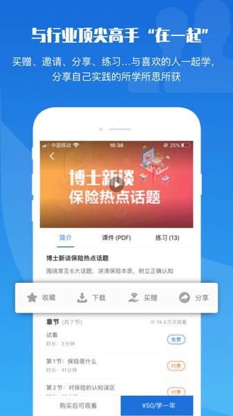 买赠、邀请、分享……与喜欢的人一起学;练习,分享自己实践所思所获所成