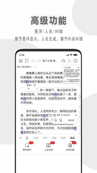 --高效写作,自动缩进,一键排版,敏感词高亮提示,快捷标点、人名,实时字数、时速,码字锁定。