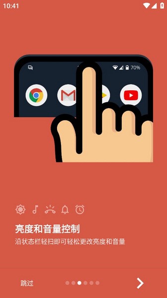 – 只需沿着状态栏滑动即可轻松更改亮度和音量