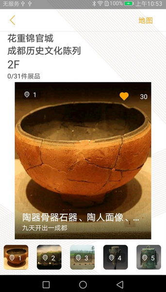 成都博物馆智慧导览app是一款能够帮助用户快速了解馆内藏品的实用工具,可以让旅客能更好地感受馆内的文化艺术气息。这里有着丰富的馆内藏品介绍和详细的浏览地图,大家可以自由查找了解每一个文物背后的出土信息和背景故事,还能更好地规划自己的浏览路线。平台致力于向公众传播成都历史文化和丰富的文物品类,大家能够在这里获得一站式的便捷浏览体验,非常方便。