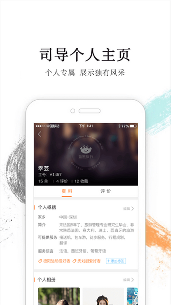 我觉得这个软件对导游来说是个不错的选择!它不仅让工作更高效,还能结交朋友,轻松赚钱。自由的工作时间和完善的培训机制更是加分项,适合想在旅游行业发展的小伙伴。特别是7*24小时客服和实时订单提醒,真的能抓住更多机会。