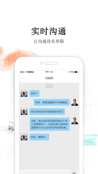 在蓝蟹,我们提供7*24小时客服服务机制答疑解惑,新订单实时推送提醒,不让你错过任何一个抢单机会。在站内你可以直接跟自己的客人沟通行程和聊天,再也不用担心因为国籍问题而失去联系。