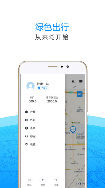 -无固定点还车,随用随走、不用随还,减少停车烦恼;