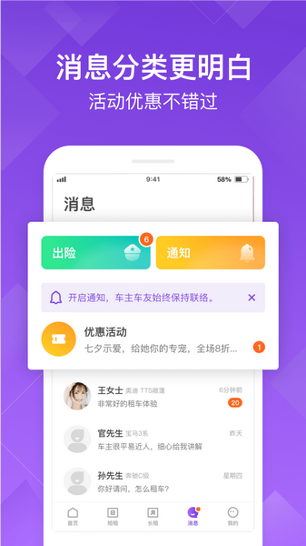 与包括中国人保在内多家保险公司合作,提供最高100万高额用车保险及7X24小时专业道路救援