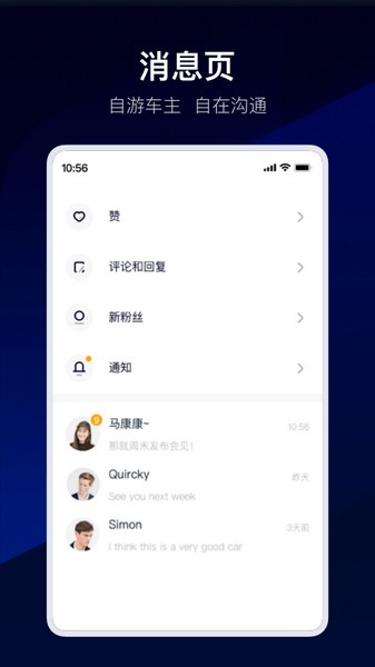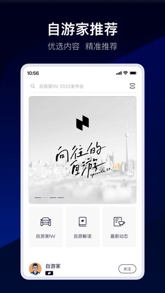 这款叫“自游家”的汽车资讯软件看起来挺实用的,主要是给喜欢车的人用的。它能提供最新的汽车资讯、活动信息,还能让你了解各种车型和服务。最棒的是有个社区版块,可以和别的用户交流,看到好友更新的消息也会第一时间提醒。