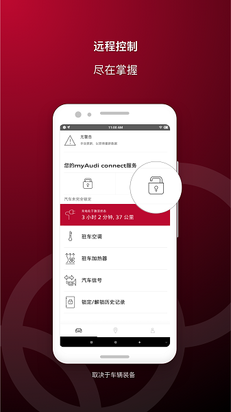 使用myAudi China 远程控制,您可以锁定或解锁您的爱车。