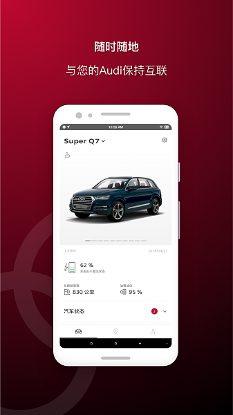 myAudi China应用能够将您与您的奥迪爱车时刻互联。这款应用以创新的方式为您提供更加贴心的服务,方便您的出行。