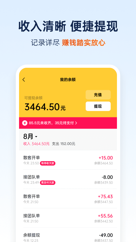 2、能够轻松的了解乘客的需求,以及顾客的目的地地点等信息。3.随时都能够通过平台与乘客沟通,有问题可以及时解决。