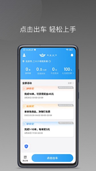 欢迎来到如嘀出行,这款轻松又能够充分满足你出行需求的app。通过简单的操作,你可以轻松完成接单、接送,全面掌握你的收益。如嘀出行不仅专门打造了清爽直观的界面设计,而且经营模式非常人性化,为你提供了一键接单、免佣福利等全程司机服务。在这里,你可以享受到使用方便、收入丰厚的出行体验,而且更有详细的订单情况和稳定的收益提现,让你轻松找到合适的位置,降低车辆的空驶率,更好地完成每一单订单。