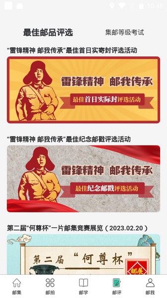 1、打开软件后,在邮评界面点击集邮等级考试。