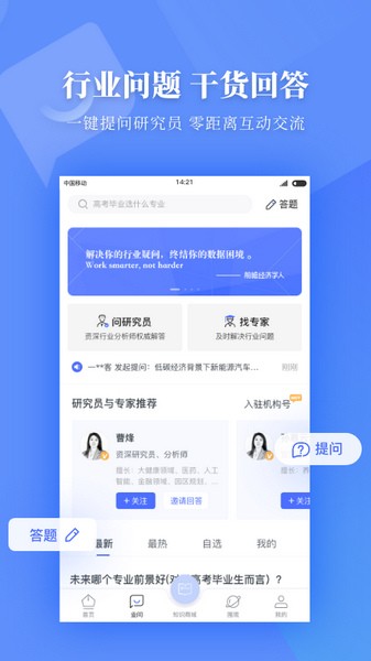 1.遇到行业问题?来这里找研究员帮你做分析,让每一个问题都有答案;