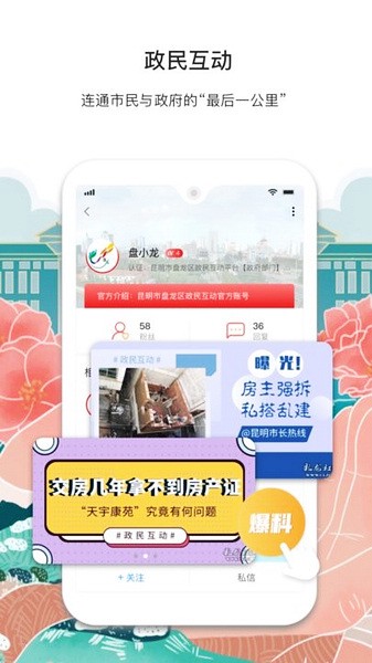 政民互动,吃喝玩乐,摄影大赛,文学大赛,美食攻略,免费电影,旅游休闲……丰富的话题内容,便捷的交流空间和体贴的资讯服务,等您来共同打造美好的精神文化交流家园。