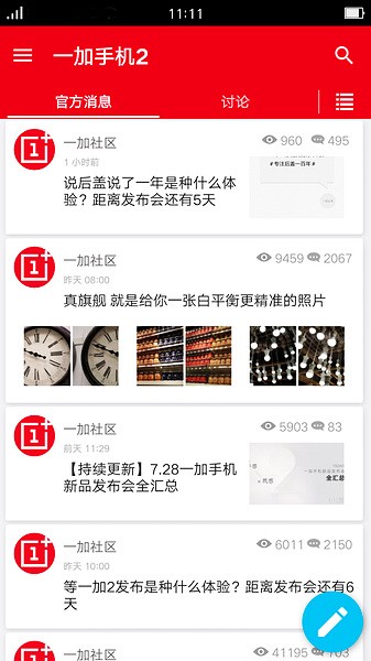 2、发布最新一加资讯: 参与丰富的官方活动,第一时间了解一加趣闻