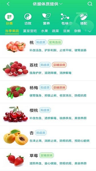 提供标准中医体质测试,针对自己身体软件会提供更加符合的显示条件。