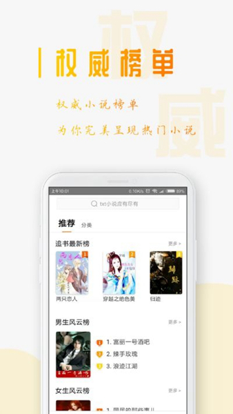 3.小说索引覆盖广、内容全,拥有千万以上的小说资源,种类丰富,近百种分类、千个标签,权威小说榜单,一站式完美呈现。