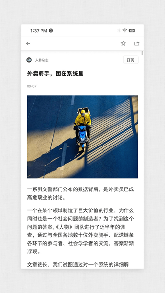 1.倡导冷峻独立的审美和良好趣味的养成,发掘对时代的深刻记录,向用户提供辽阔的欢喜和阅读的自由。