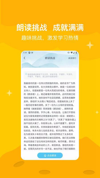 6、朗读挑战,每个人可以每天在此无限次的参与朗读挑战获取排名;
