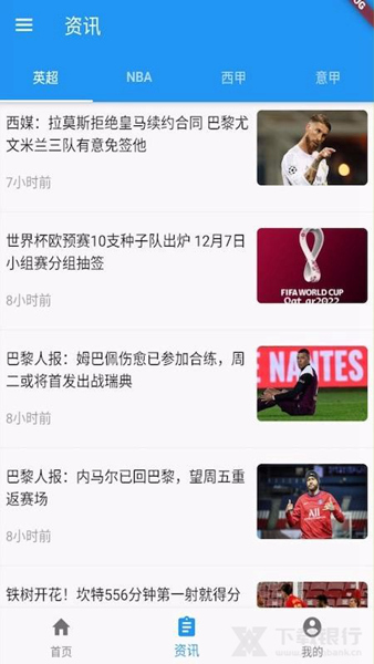 2、根据资讯分类栏目浏览新闻资讯,快速了解到感兴趣的球赛动态;