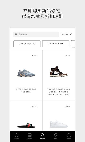 来自众多街头和设计师品牌的超过100万款商品,其中包括 Nike、Air Jordan、adidas、Yeezy、Off-White、Comme des Gar?ons、Supreme、Gucci 等等;