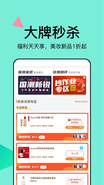 缺化妆品的朋友们,快来!参与很简单,只要你在#测评官话题下说说美妆/护肤使用感受,就能获得当季新品的测评资格。中奖率超高的!记住试用后,把你的体验告诉大家哈~