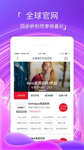 软件功能也很强大,实时更新全球折扣信息,还有海量种草资讯和真实晒单,让你买得明明白白。美妆、包包、配饰、鞋服啥的都有,价格比国内专柜便宜30%~50%,大牌新款、限量款都能第一时间买到。