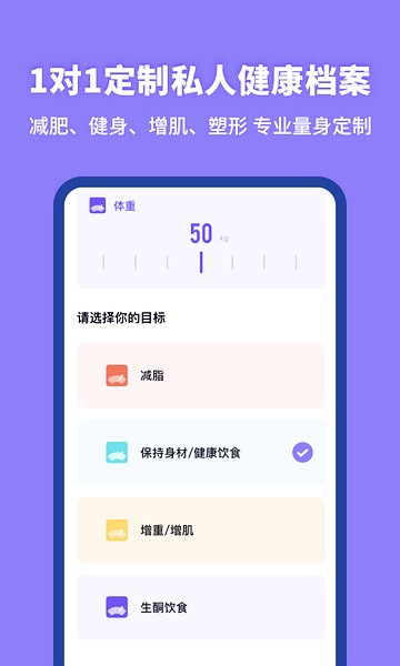 定制减肥方案、减脂食谱,记录体重、体脂、围度等多维数据变化,符合中国饮食习惯,健康高效管理。