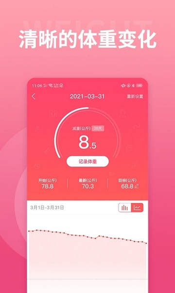 通过减肥打卡和体重记录,对减肥记录进行分析,让减肥更简单。是你快速减肥、瘦身、健身、塑形时必备的减肥助手。
