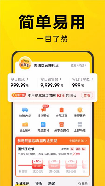 美团优选团长端app是一款致力于为团长提供便捷接单和实现持续收入的手机应用。其愿景是“携手百万团长,服务一亿家庭”,通过提供有竞争力的佣金和奖励金、完善的培训体制以及全方位的支持措施,为团长们打造一个理想的服务平台。该平台不仅提供零成本的优质商品,同时通过简单的一键分享机制,团长可以轻松实现销售,为顾客提供质优价廉的商品。