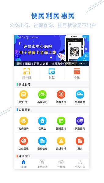 1、在这里,衣食住行全都通,挂号就诊更轻松,金融增值有保证,消费打折乐融融,智慧生活享全城。许都通,让您的生活更轻松,是您不二的生活伴侣。