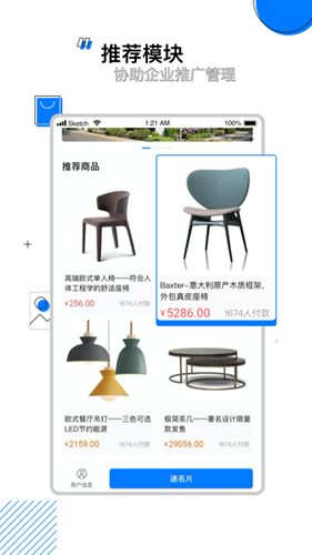 通过名片展示自我的同时,给目标用户呈现自己家的商品,通过配置推荐商品就能快速的实现。