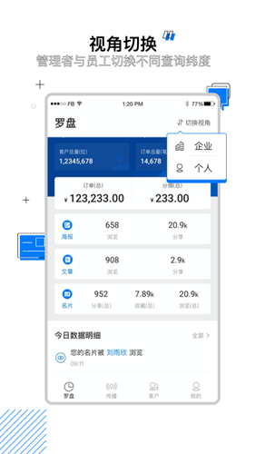 浏览/使用即客户,通过名片、海报、文章、商品功能多场景/跨平台拓客。