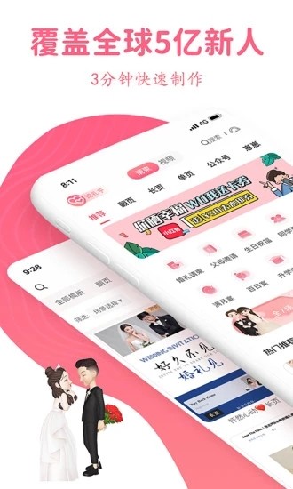 婚礼电子请柬、结婚请柬、宝宝满月、电子邀请函、电子请帖、喜帖、同学聚会、生日贺卡、老人寿宴、乔迁等海量模板。