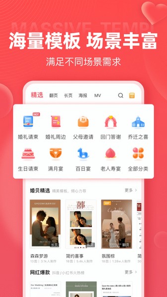 婚礼请柬,让邀请更有温度。婚礼电子请柬、婚礼请帖、结婚请柬、宝宝满月、电子邀请函、电子请帖、喜帖、同学聚会、生日贺卡、老人寿宴、乔迁、婚礼纪念等海量APP模板。