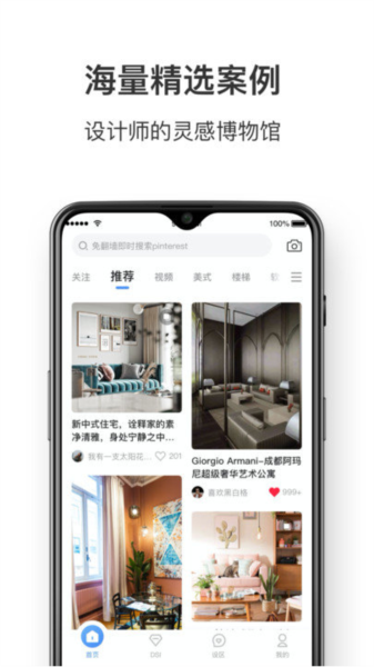 2、进入首页,选择关注、推荐、视频、美式、楼梯等查看推荐的家装案例