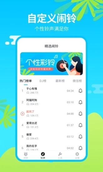 平台里有各种闹钟铃声音量,无论你手机音量设置怎样都会照常响铃闹铃;