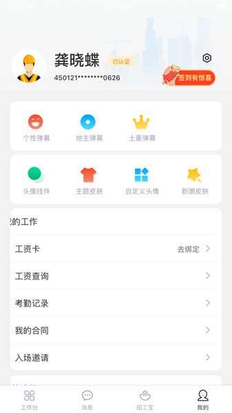 桂建通-工人端初期主要提供桂建通银行卡管理、工资查询、考勤记录查询的基础功能,