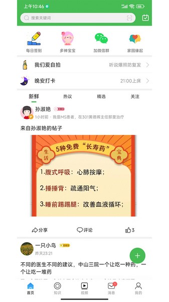 2.用户可以在平台上分享自己的经验和体会,让其他患者互相学习,帮助大家快速获得健康。