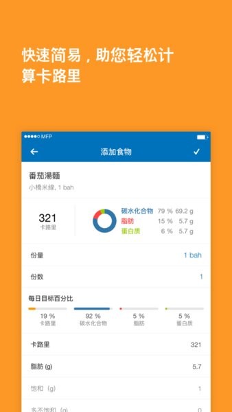 跟踪所有营养-卡路里,脂肪,蛋白质,碳水化合物,糖,纤维,胆固醇,维生素等。